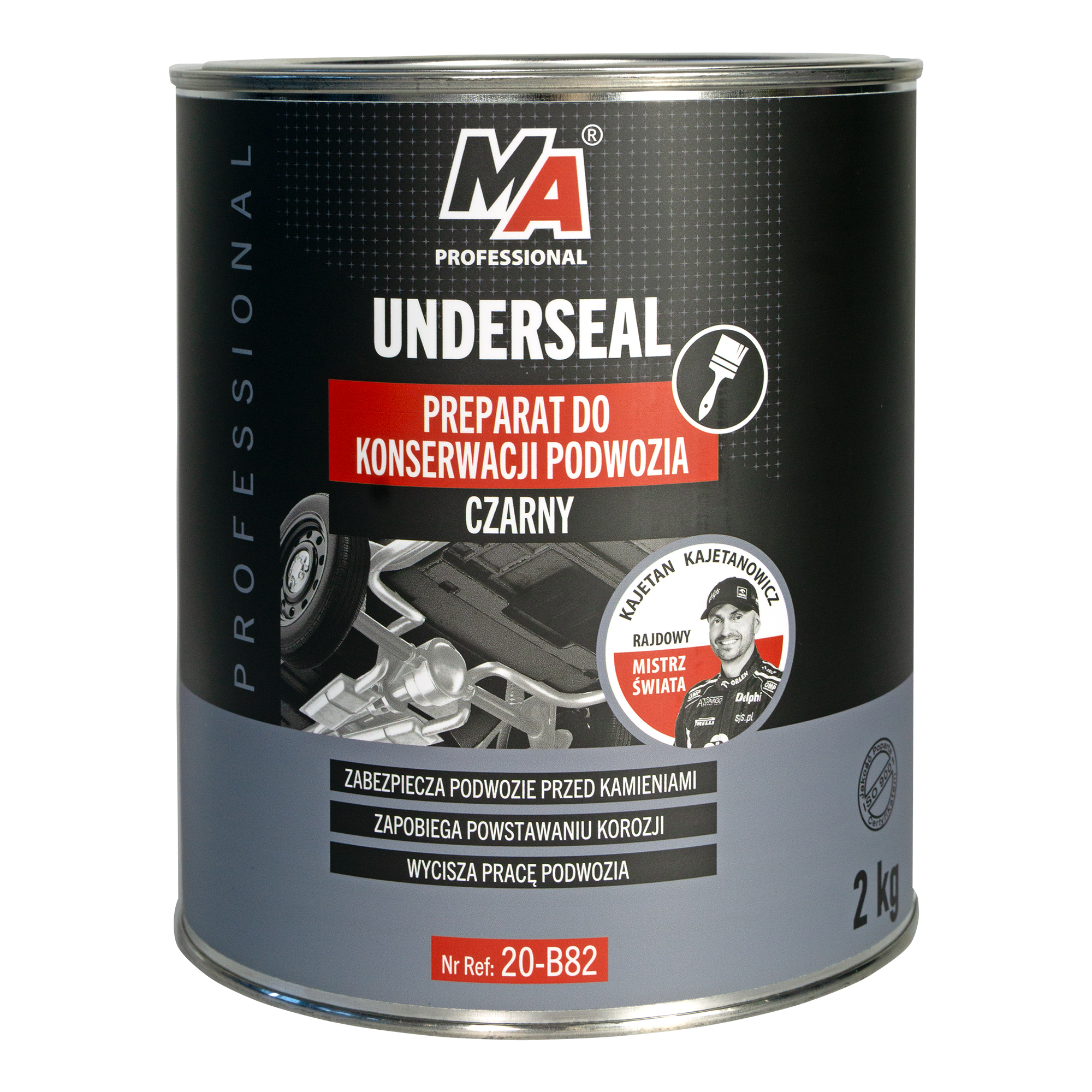 Preparat do zabezpieczania i konserwacji podwozia na bazie bitumiczno-kauczukowej (niemalowalny), tworzy trwałą i elastyczną powłokę ochronna na powierzchni elementów metalowych. Zabezpiecza przed przenikaniem wody i soli, zapobiega powstawaniu korozji. Chroni podwozie samochodów przed uszkodzeniami w wyniku uderzenia kamieniami. Ogranicza hałas przenikający z jezdni.